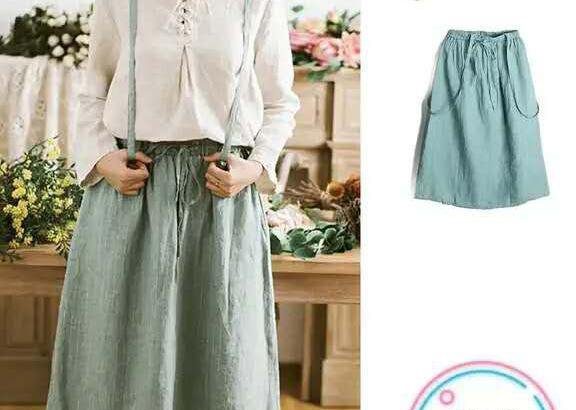 3. 漸變色亞麻上衣+亞麻復古半裙