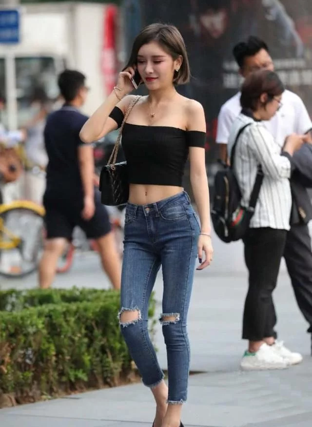 一字肩短衫跟牛仔褲搭配起來可以說是最輕鬆百搭的組合了,像照片中的小姐姐身着一件黑色的一字肩短衫+藍色牛仔褲,整個搭配看起來簡單卻把自己的身材跟氣質都完美的展現出來,之所以可以穿出這麼好看的造型,完全得益於她那副精緻的臉蛋跟一頭棕色的中分短髮,稍微加點粉色的粉底,有一種娃娃臉的感覺,配上纖細的身板,整個造型越發的迷人。       黑色的一字肩短衫是最受大家歡迎的款式,特別適合那些對自己的肩膀線條有足夠自信的女生,短打+修身的版型最容易修飾出曼妙迷人的細腰了,簡約的雙袖設計不僅可以起到支撐的作用,而且對修飾纖細的手臂線條也是有很大的幫助的,讓整個纖細的身板盡顯無遺,絕對是最清涼個性的單品。                   在褲子的搭配,選擇了一條藍色的緊身牛仔褲,但是要注意的是,牛仔褲雖然簡單百搭,在顏色的搭配上也不能馬虎,既然在上半身選擇了黑色的單品,那麼在牛仔褲的色彩搭配上就不能再選擇黑色系的了,這樣就穿不出春天本來就應該有的五彩繽紛的效果,所以選擇一條藍色的牛仔褲,讓整個造型的色彩搭配有點變化,更符合春季的穿搭要求。       選擇緊身的版型是穿出苗條身材的關鍵,加上高腰的設計,既顯高又顯得腰線更加纖細曼妙,在膝蓋的位置隨意剪了兩個洞洞,給自身的穿搭增加一些時尚潮流氣息。對於一些小個子女生,穿搭要考慮自己身高的視覺效果,最簡單的技巧就是選擇八分長的褲腳,再配上一雙高跟鞋就可以完美的讓自己的身材增加一大截,顯高的效果杠杠的。       好了,以上就是Vivian給大家帶來的一字肩短衫+牛仔褲的穿搭介紹,雖然一字肩短衫看起來很單調,但是穿搭起來的卻是最美清涼顯個性的,要說款式跟種類,它也絲毫不差,可以塞滿你的整個衣櫥,在顏色搭配跟細節上也有很多選擇,想穿裙子的女生可以直接搭配一條浪漫迷人的半身裙,趁着這個美好的季節,跟春天來個約會吧!