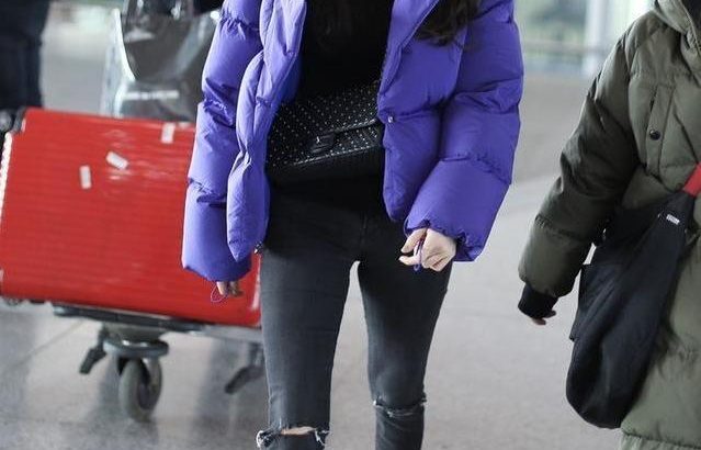 歐陽娜娜太任性,穿羽絨服搭破洞牛仔褲